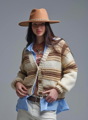 V neck chunky cardi - Brown