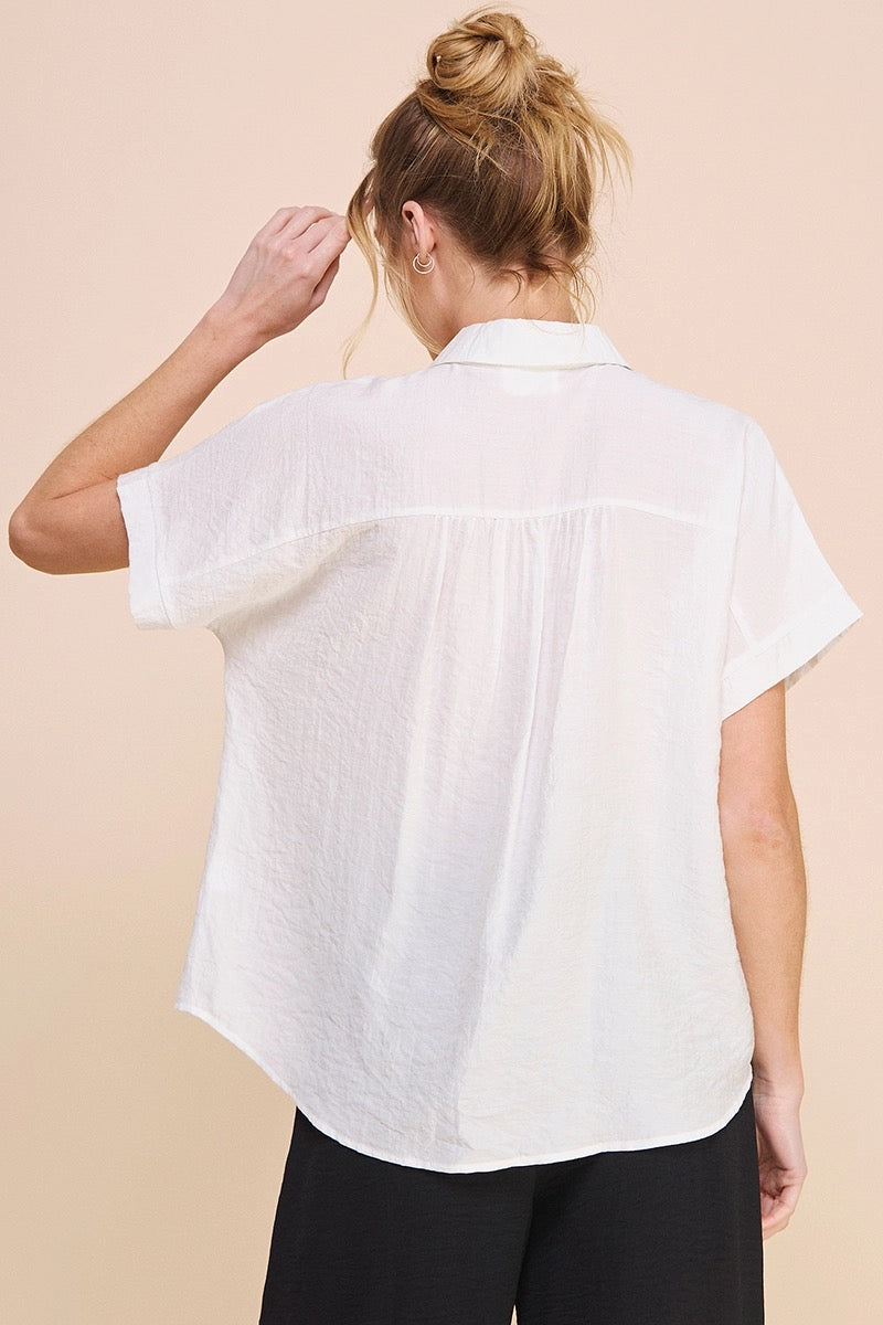 textured ss button shirt - off white