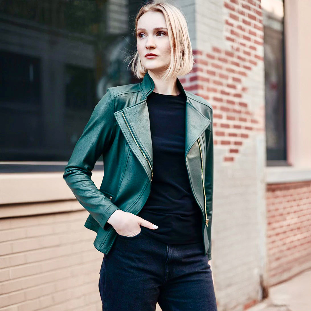 Liquid leather knit jkt - Green
