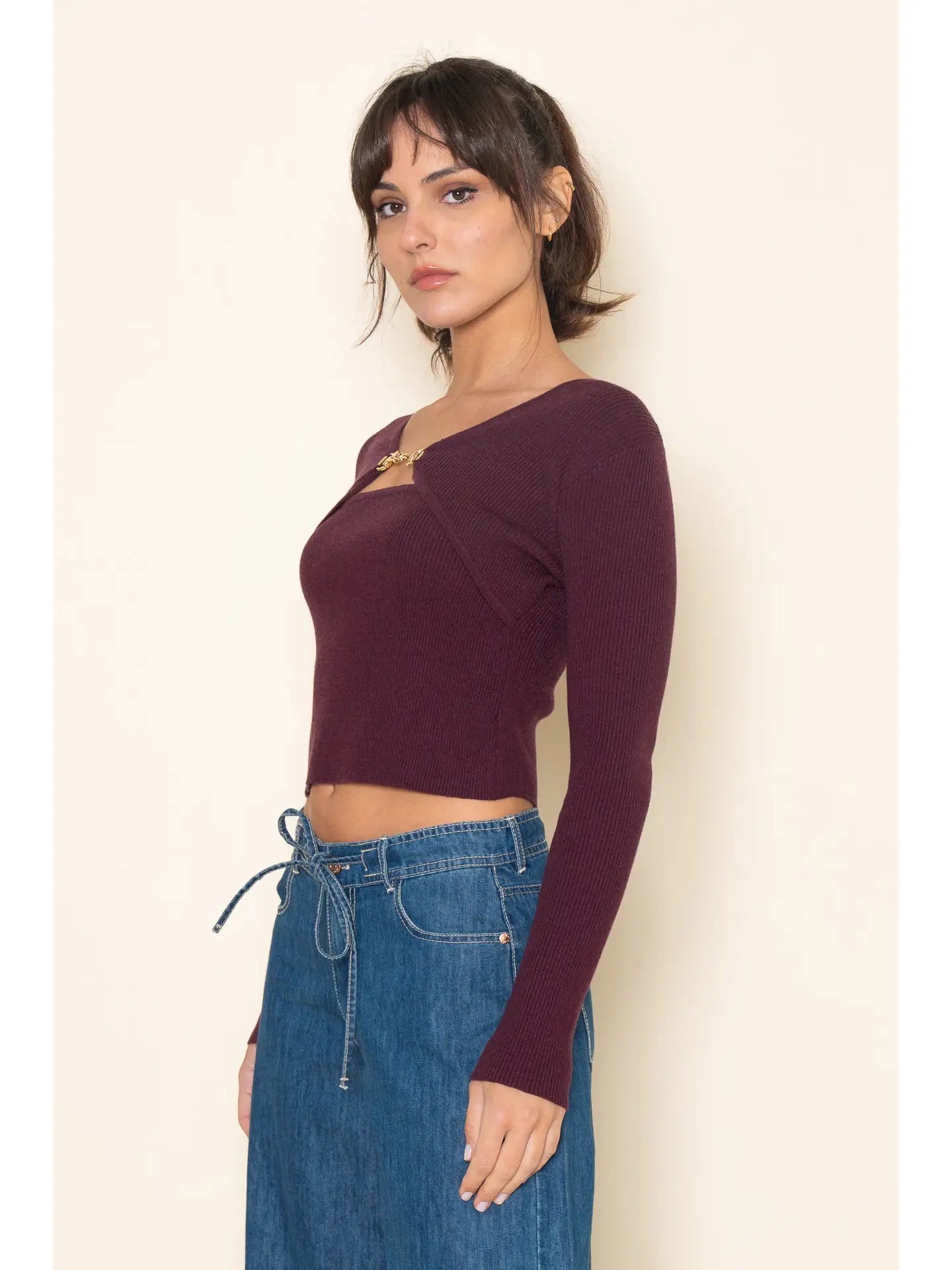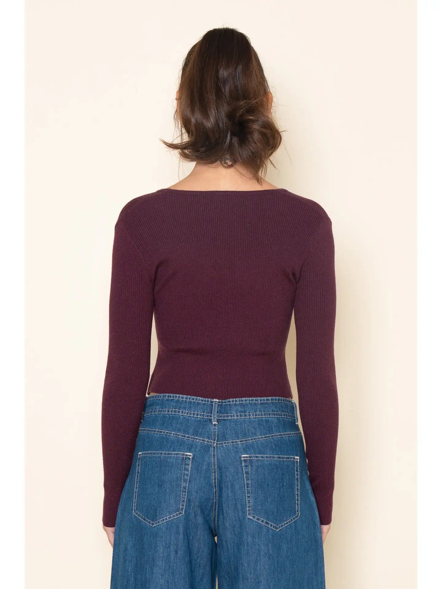V Neck Knit Top - Burgundy