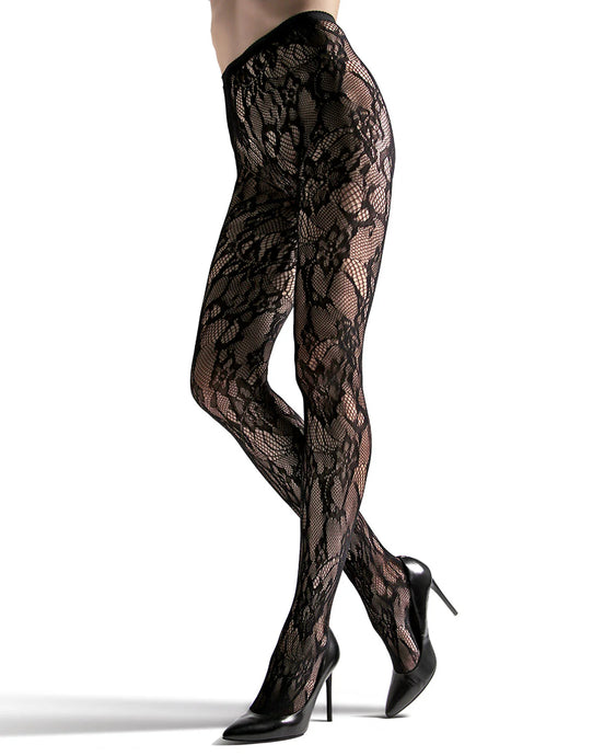 lace cut out tights - black