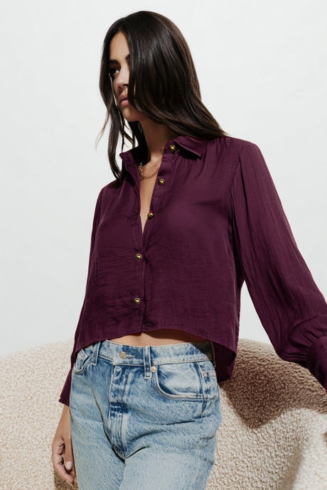 blanket stitch cropped blouse - Wine
