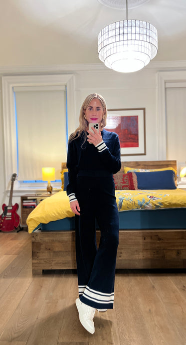 Side stripe Sweater - Navy/white